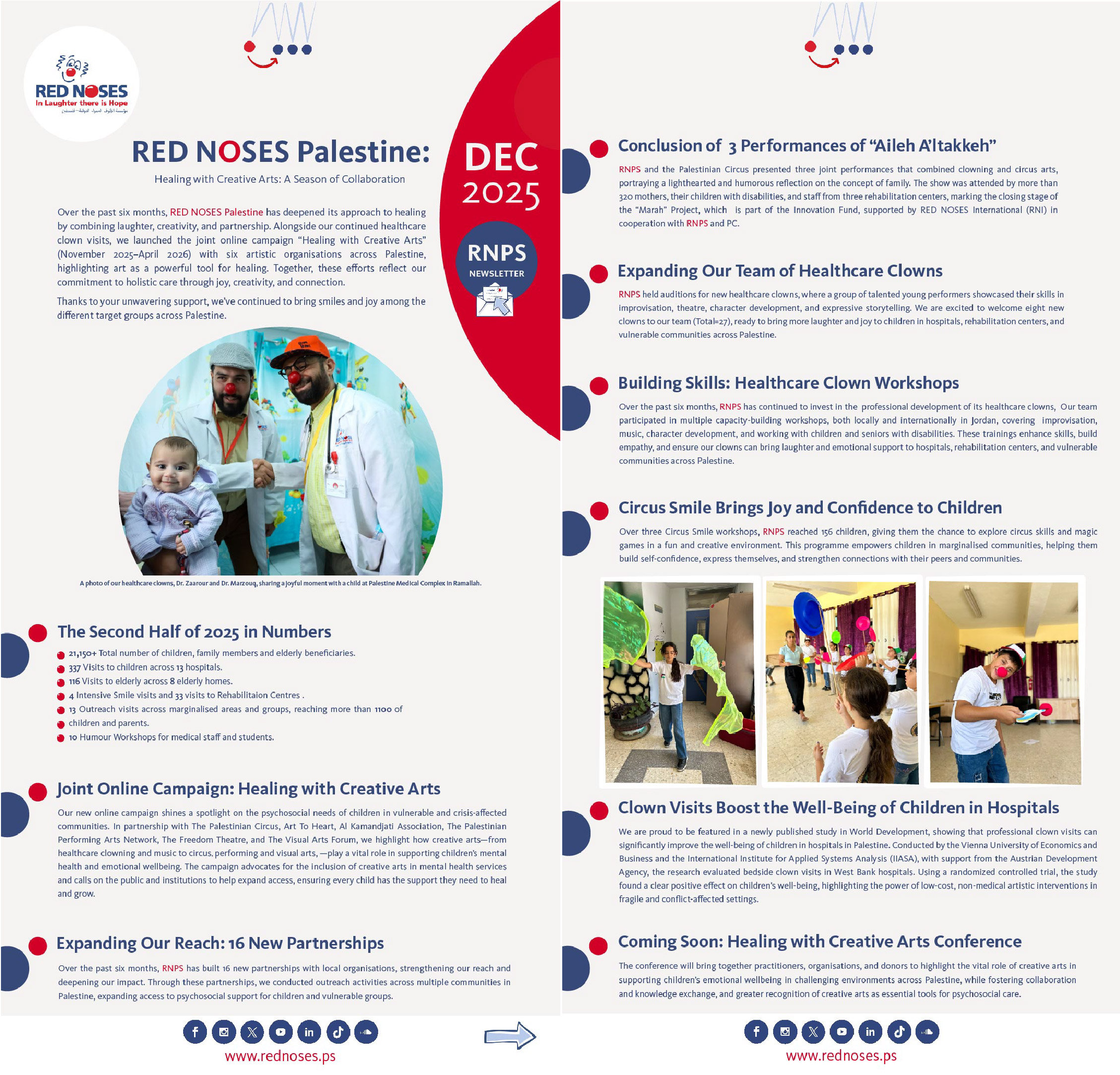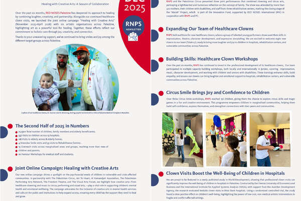 Stay connected with the latest updates from RED NOSES Palestine through our regular newsletters. Here, we highlight recent projects and events, and keep you informed about our impact across communities in Palestine.